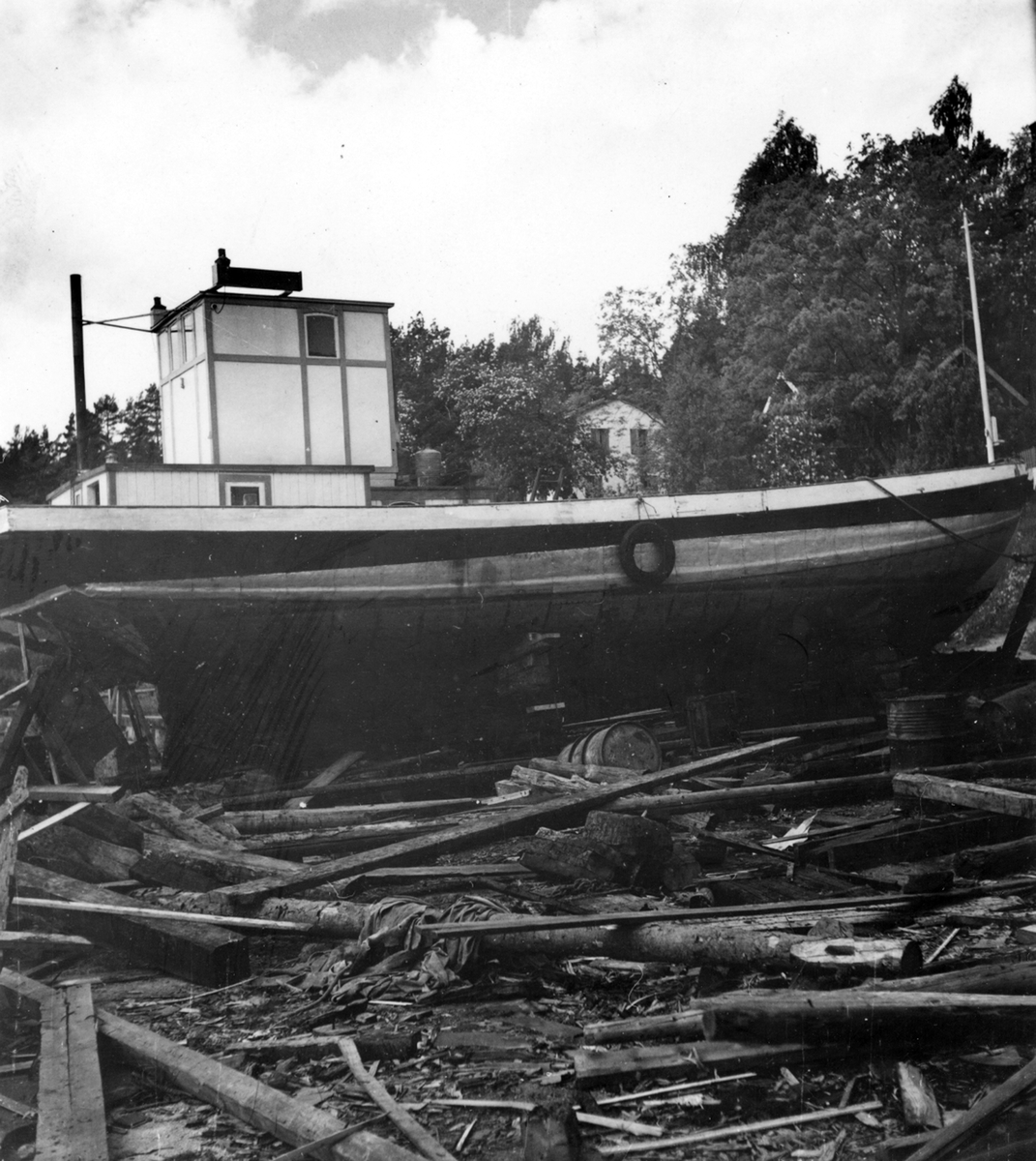 Uppland, Stockholms län, Åkers skreppslag, Ljusterö socken, Bergshamra varv. sandkilen Artemis av Ljusterö på bergshamra verkstad.
