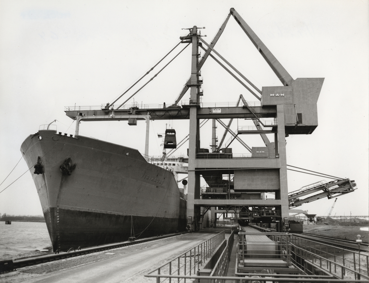 Malmtankmotorfartyget VIRIHAURE av Stockholm lastas i Bremen nov. 1964.