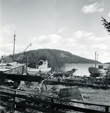 Skutbyggaren J. Dahlkvists slip med skutor av kustafarartyp.