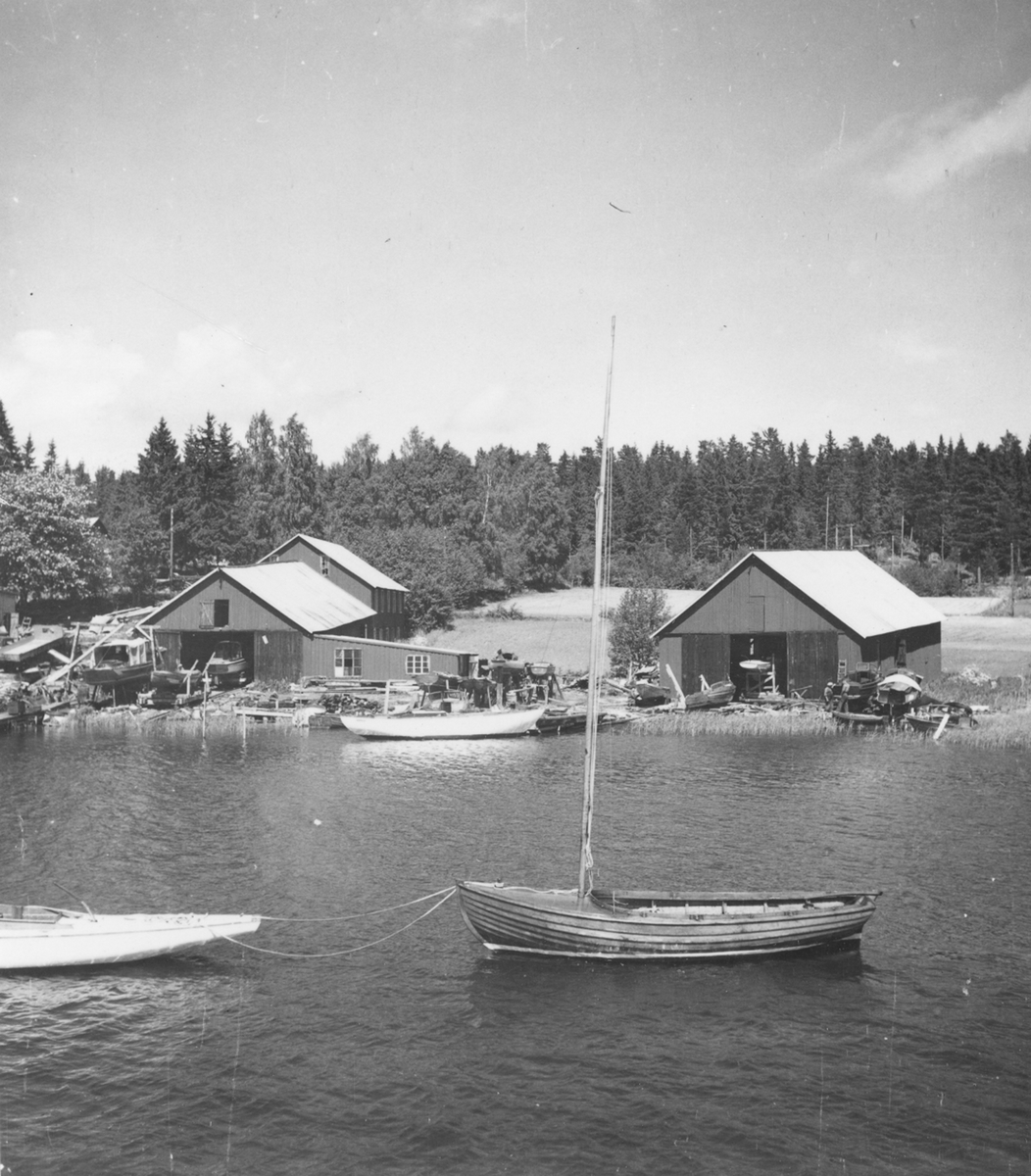 Uppland, Stockholms län, Frötuna skeppslag, Länna socken, Bergshamra. Parti av Bergshamra varv och verkstad från StO. juni 1950