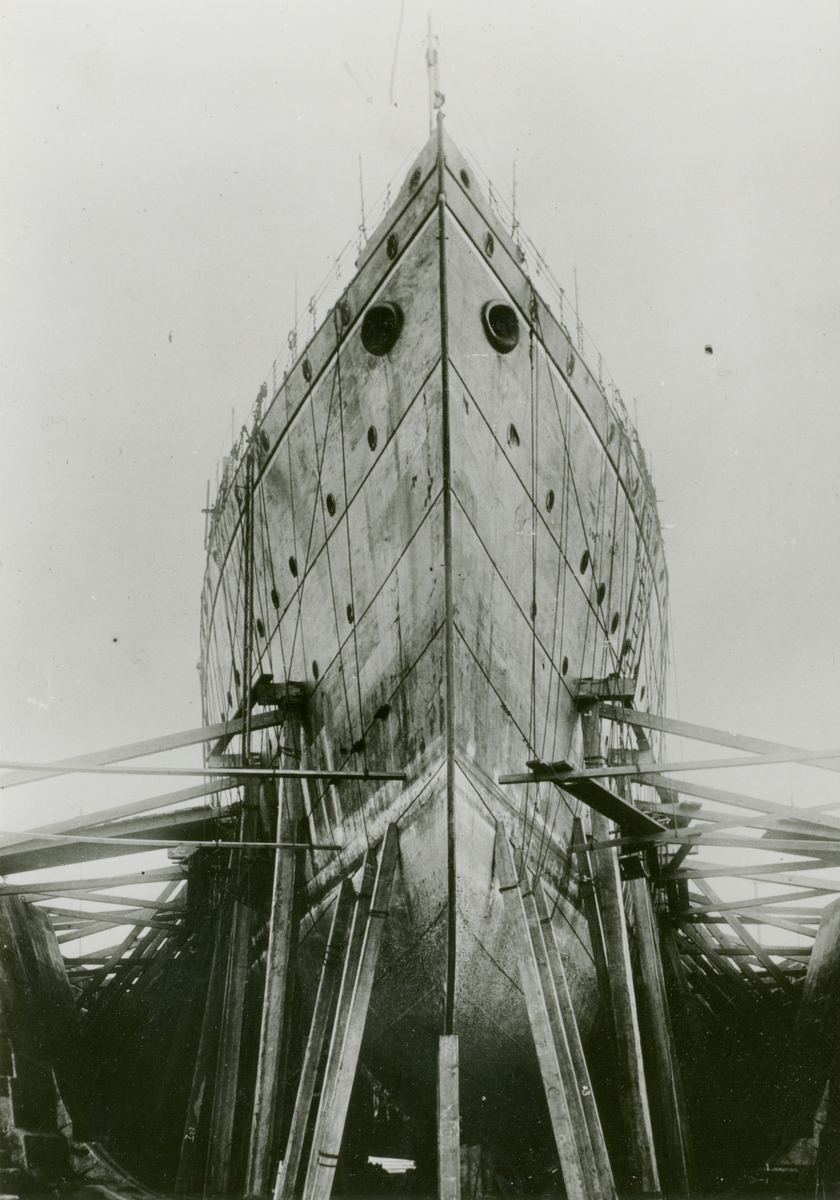 Foto visande post-pch passagerarångfartyget CHINA av London i okänd docka efter strandningen aå Azalearevet vid Perim i Röda Havet 1898-03-25.