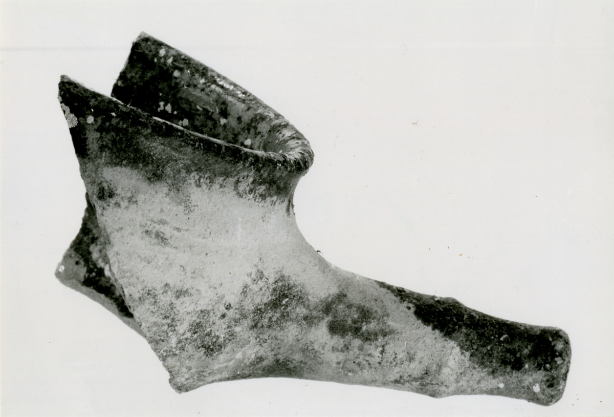 Del av gryta, handtag. Sjöfynd från Djurhamn.