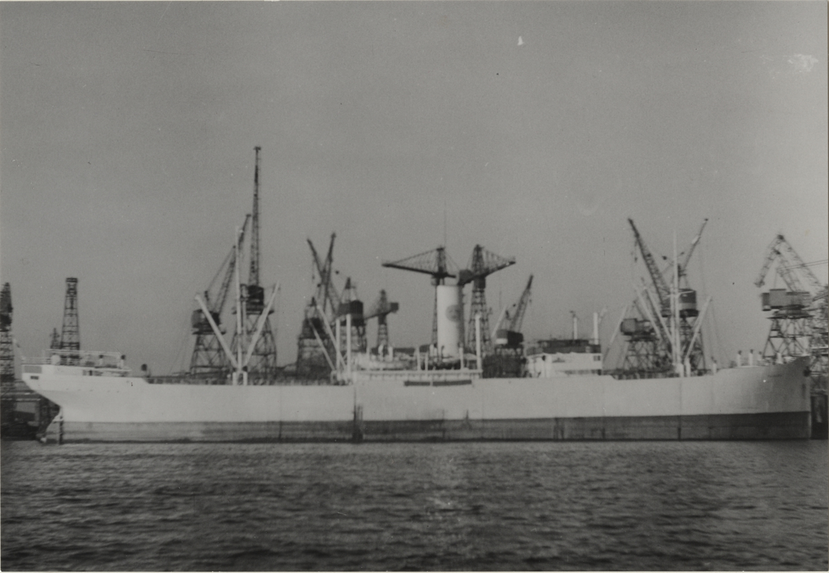 Lastmotorfartyget TAMARA av Göteborg. Fartyget ligger vid Götaverken den 23 dec. 1951. 1961 såldes fartyget till Rederi AB Timex i Göteborg och fick namnet BROSEA.