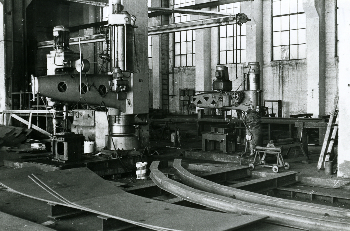 Oskarshamns varv. Till höger på bilden Radialborrmaskin Heller typ 50/1600, inköpt 1962. till vänster Radialborrmaskin typ RF-51-C. Fabr. Manfred Weiss, inköpt 1959.