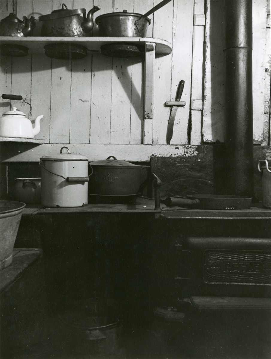 Samlingarna under uppordnade våren 1936. Utställningen i Sjöfartsavdelningen. Kabyssen i HOPPETS skans.