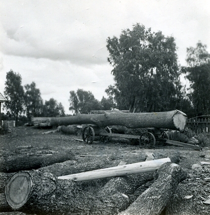 Fredrik Jonssons varv. Fredrik Jonssons varv. Ektimmer framfört för sågning.