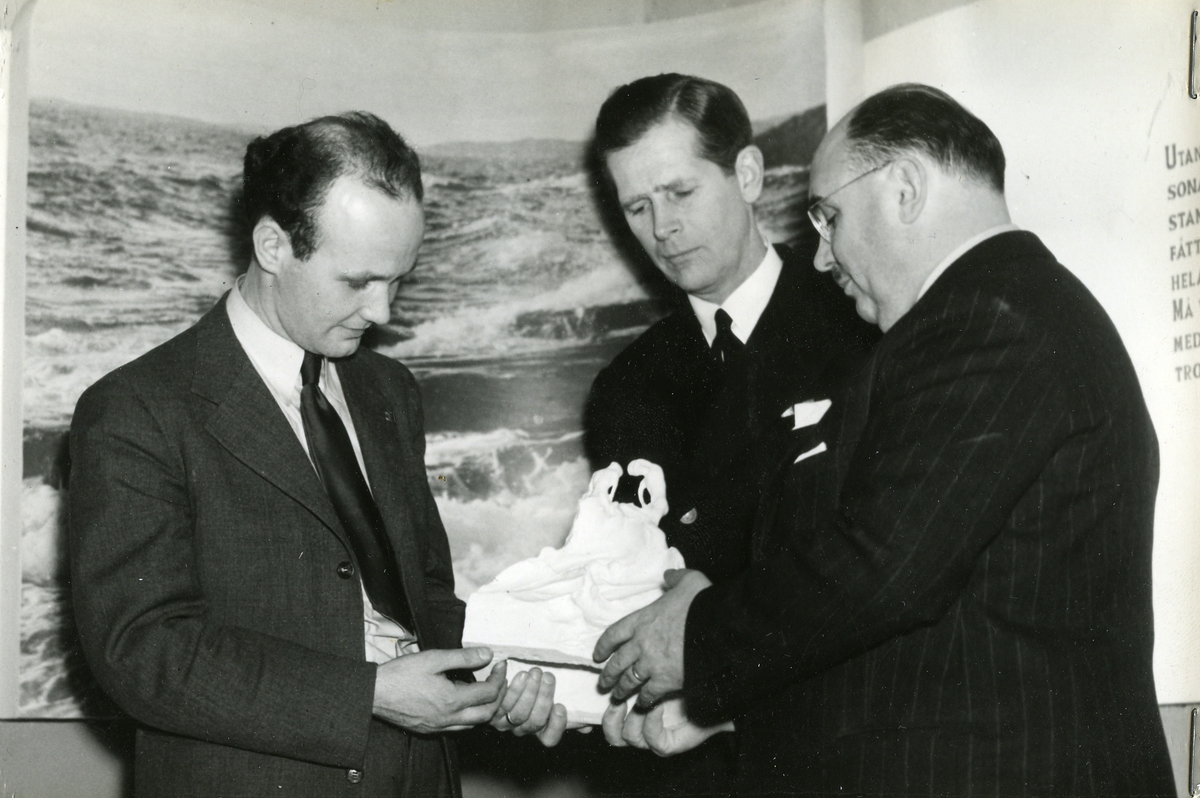 Fr v till h: en skulptör, baron O. af Ugglas och överintendenten G. Albe (otydligt namn)