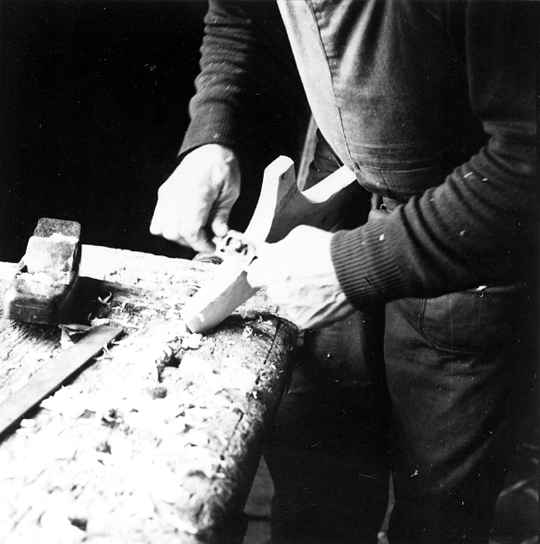 Neg nr 282, Putsning av bakhåns översida med "lapphyvel". Foto 21.8 (1962).