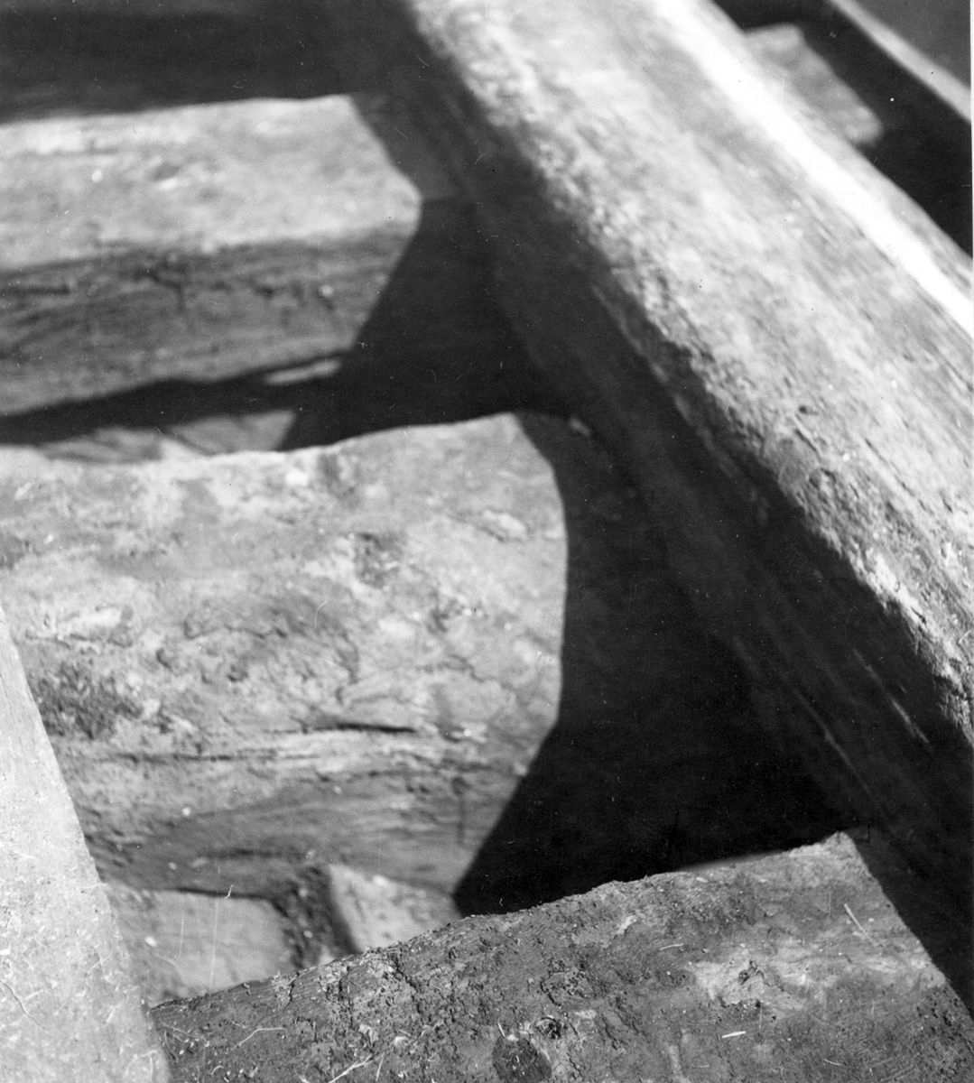 Uppland, Stockholms län, Frötuna skeppslag, Länna socken, Vettershaga. Vedjakten Adalia, bottenstockar o kölsvin. Foto i juni 1950.