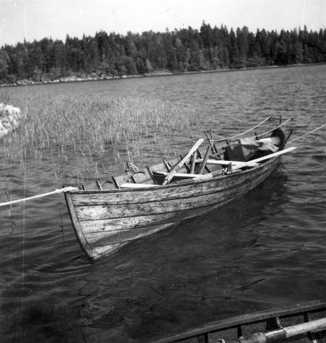 Uppland, stockholms län, Frötuna skeppslag, Länna socken, Gåsskär. segelsömmare Örlund vid sin båt.