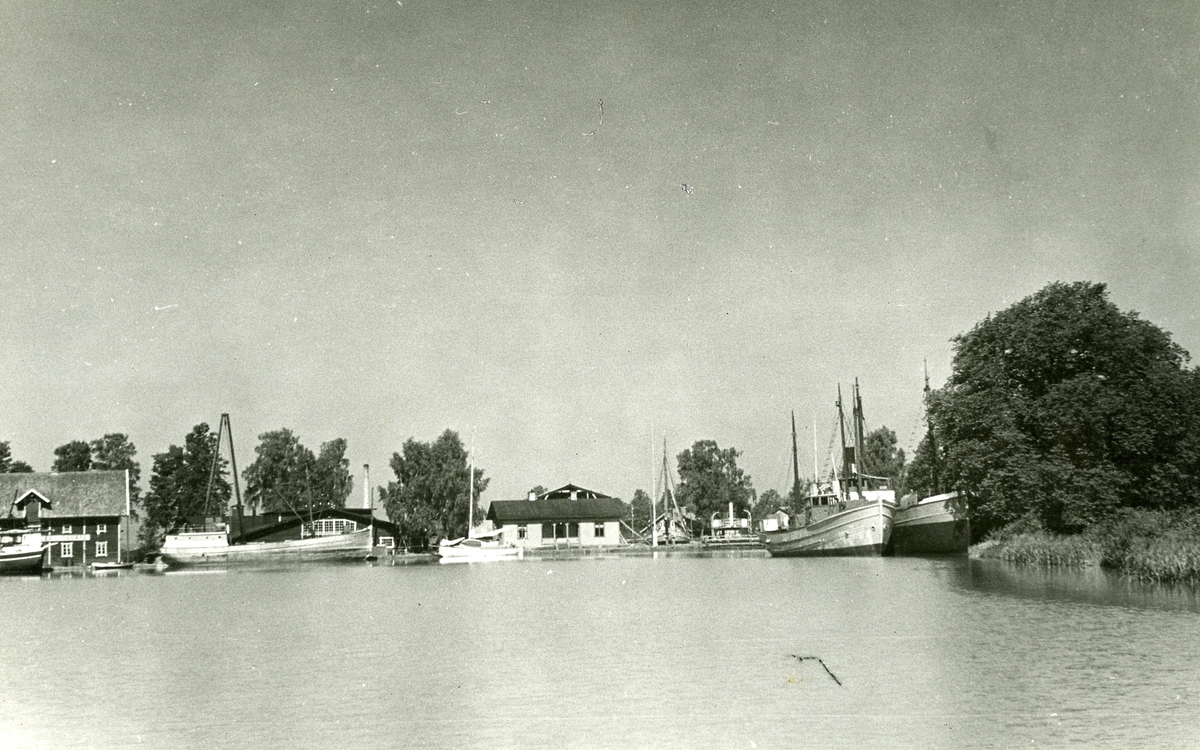 Sjötorps varv. Totalbild från kanalens övre lopp.