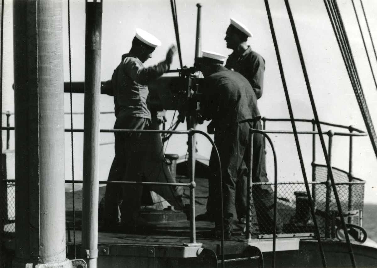Göteborgs Örlogsdepå. H.M. Hjvb 384. Exercis med fartygets 57 mm:s kanon.