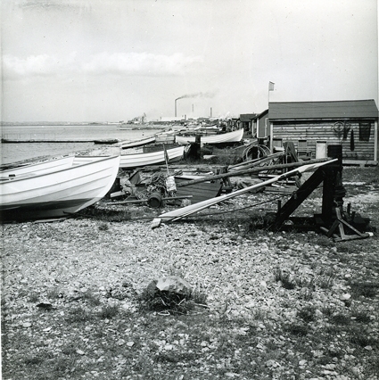 Snipa, kopplad till ett gångspel för upphalning. OBS denn långa kroken av järn som kopplats i ett hål i snipans köl vid kriet. []. Stranden mot Öresund. Skåne, Malmöhus län, Råå.
