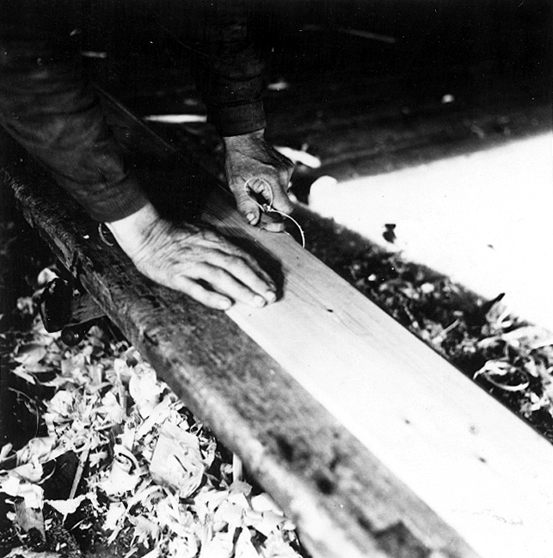 Neg nr 125. Bordkanten förses med spikrad med hjälp av "klösen". Foto 9.8 (1962).