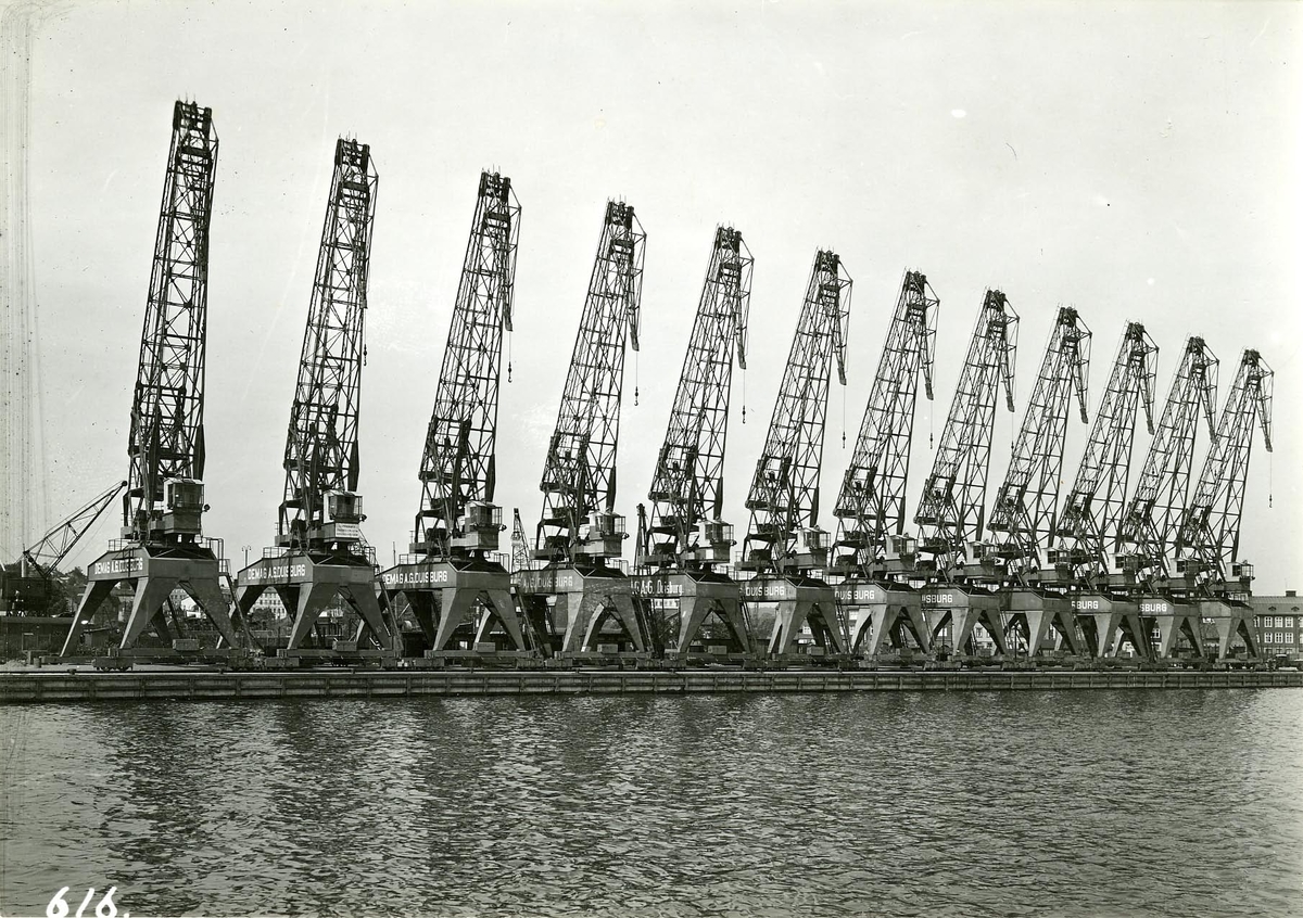 Kranar i Lindholmshamnen, 9-m-kajen. Foto från Ö.