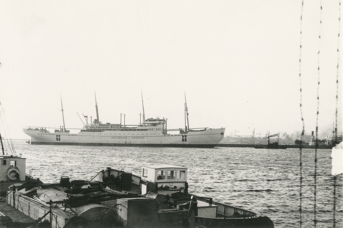 Foto i svartvitt visande passagerarmotorfartyget Jutlandia