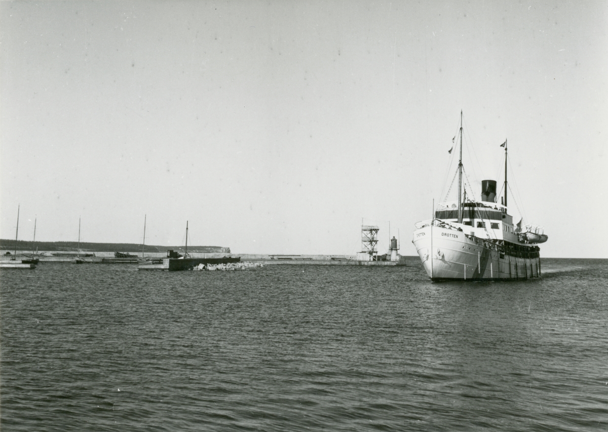 Passagerarångfartyget DROTTEN av Visby i inloppet till Visby år 1940.
