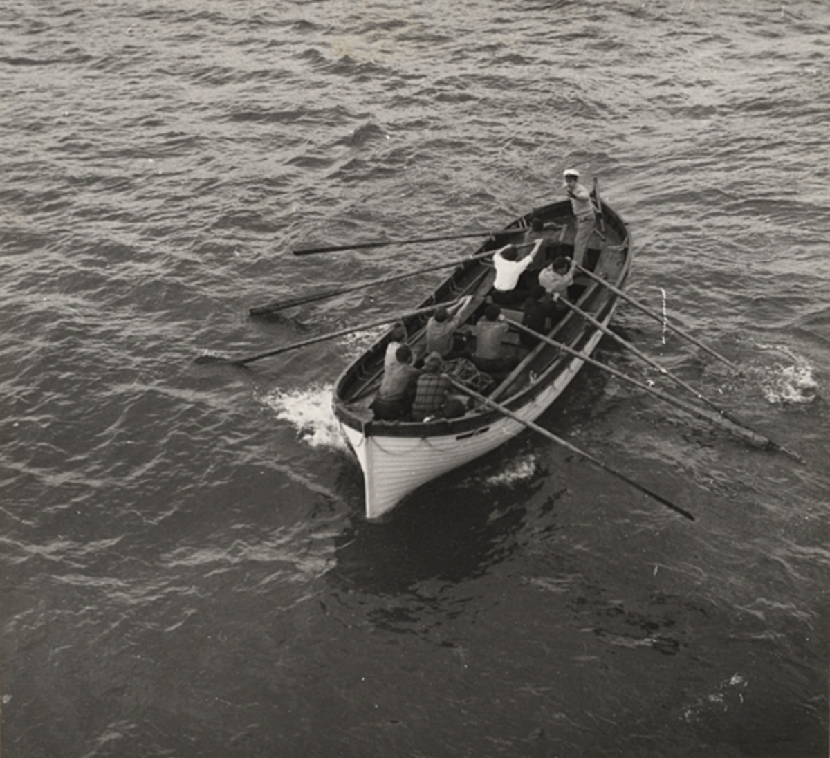 Övning i rodd i en av m/s GOLDEN OCEANs livbåtar på Haifas redd 1952.