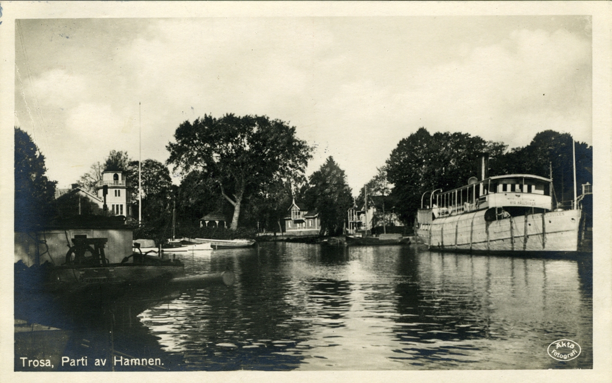 Trosa, Parti av Hamnen. Äkta fotografi.