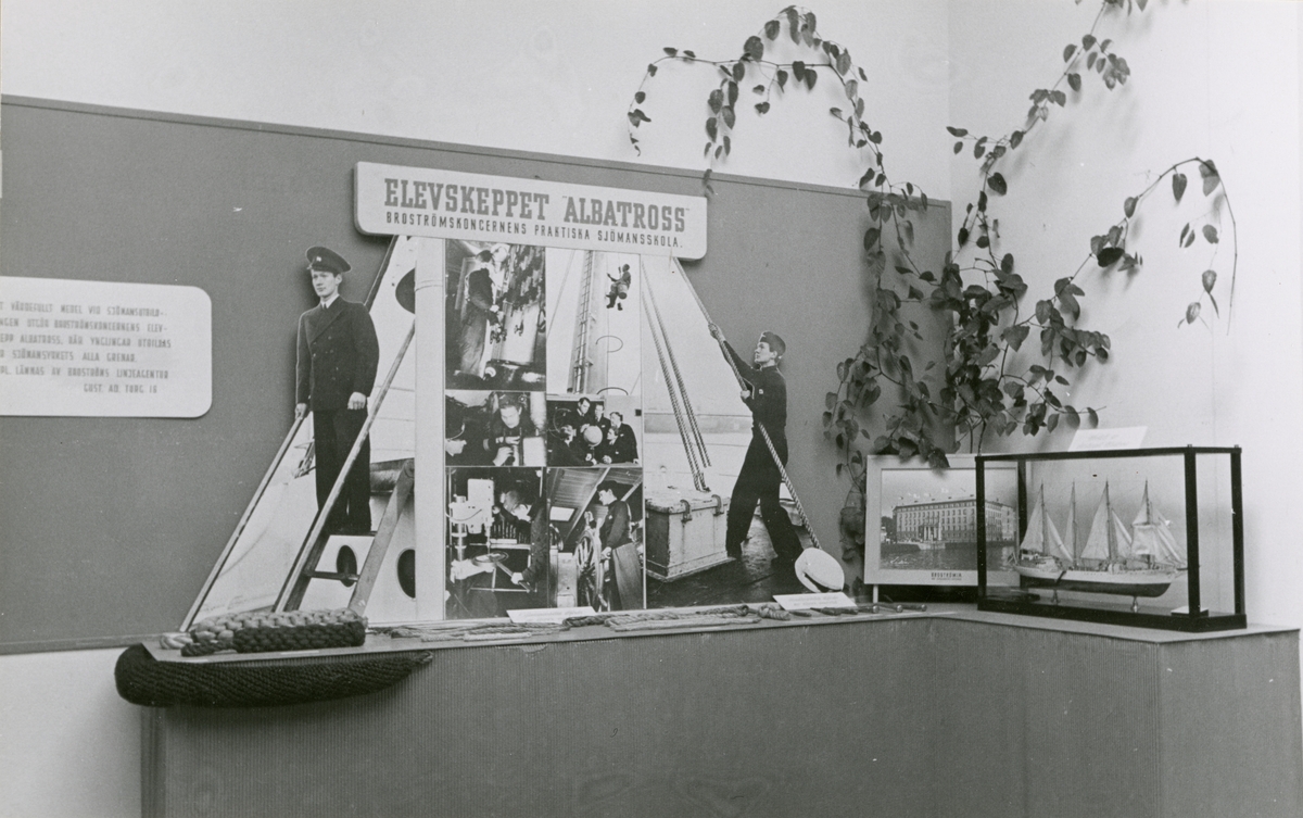 Tillfälliga utställningen Moderna rederisalen. Elevskeppet ALBATROSS. Broströmskoncernen praktiska sjömansskola.