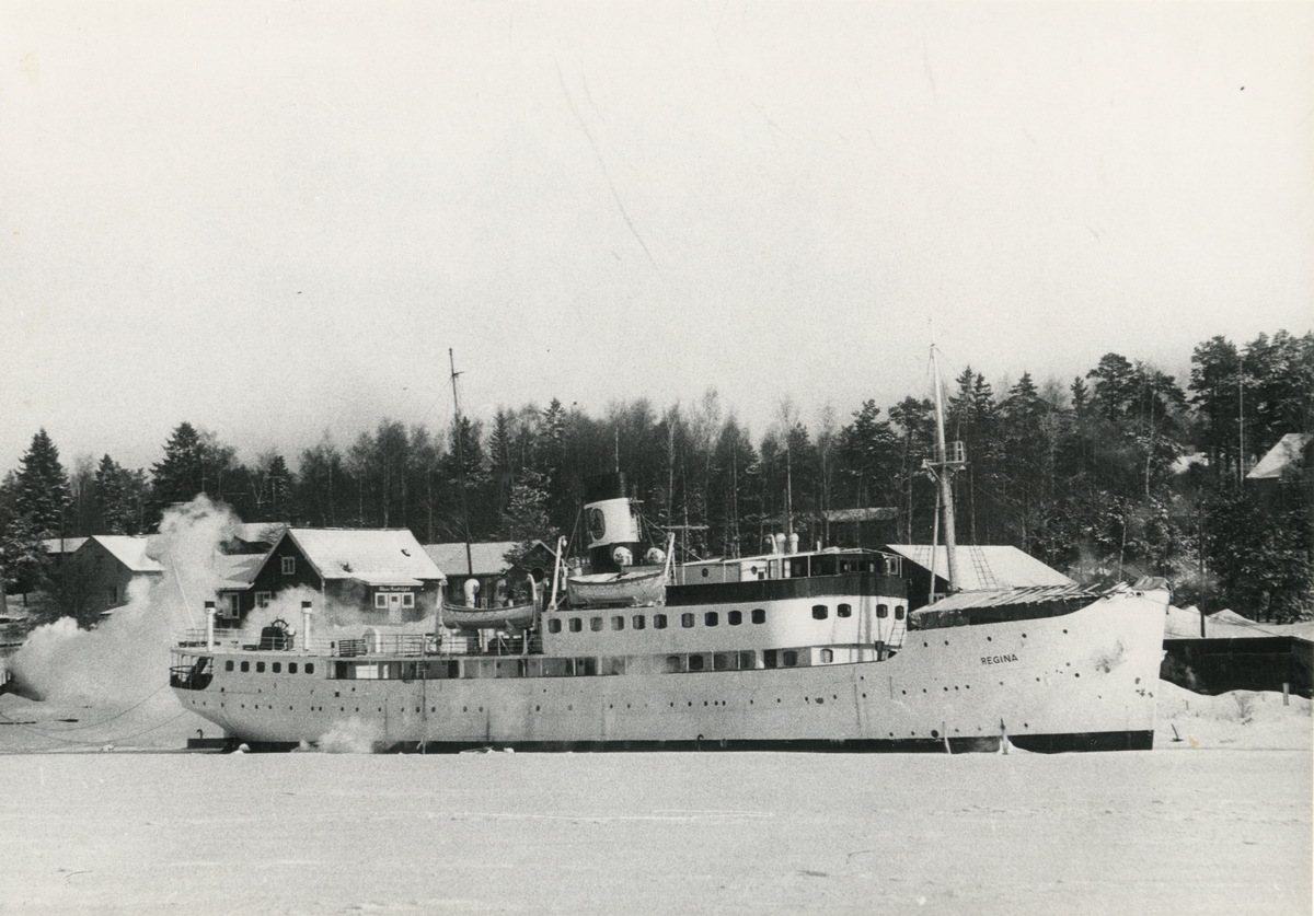 Passagerarångfartyget Regina av Hallstavik liggande i Hallstavik. Rederiet använde fartyget som logementsförläggning.