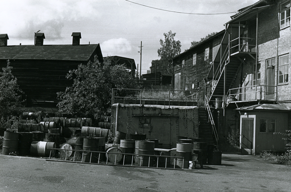 Oskarshamns varv. Oljekällare i förgrunden. till höger trappa upp till sjukstugan. Bakom denna isolerarverkstaden. Till vänster gammal nagelbod.