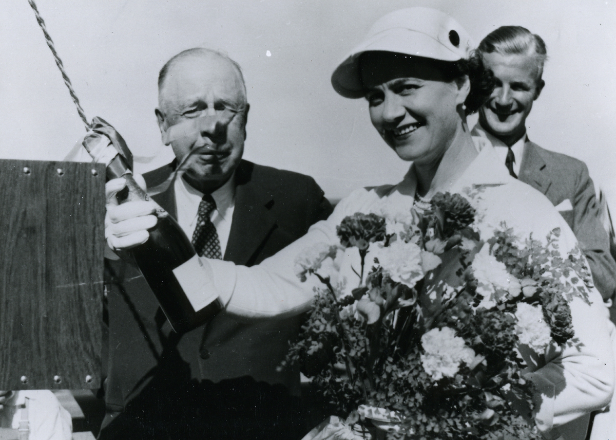 Direktör Robert Ameln och bergsrådinnan Disa von Rettig strax före dopet 1.7.1952.