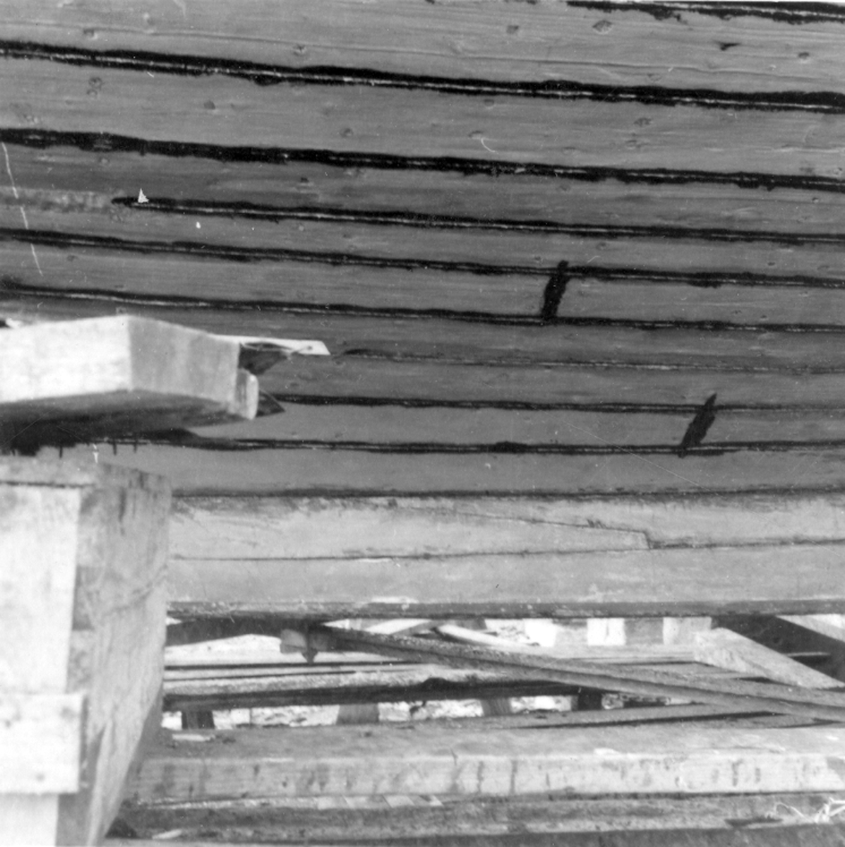Fredrik Johanssons varv. Jakten Vega av Degerhamn, byggd i Bergkvara 1909. På slip för drivning. Skrovet sett underifrån.