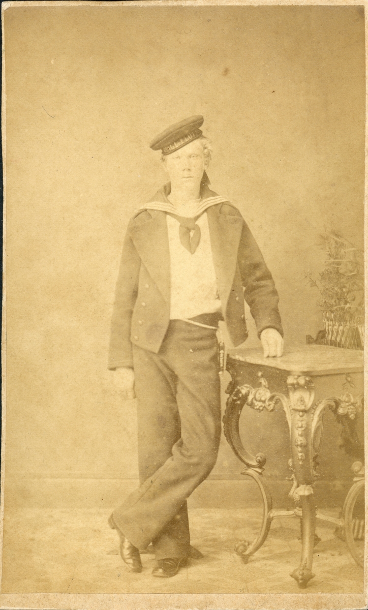 Ateljéporträtt av oidentifierad ung man i matrosuniform
