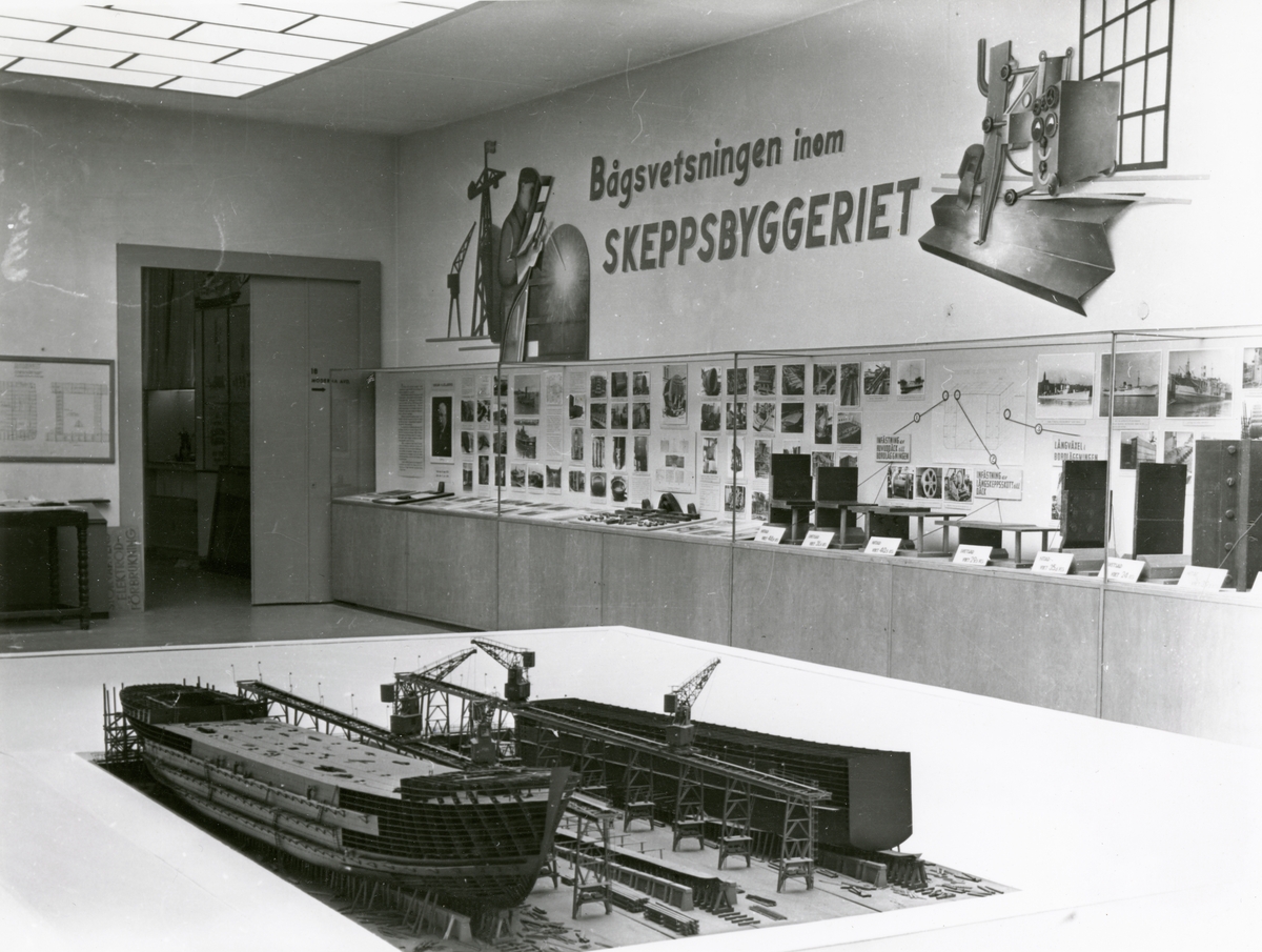 Tillfälliga utställningen "Varv och skeppsbyggeri". Monter visande ESAB:s (Elektriska svetsningsaktiebolaget) verksamhet.
