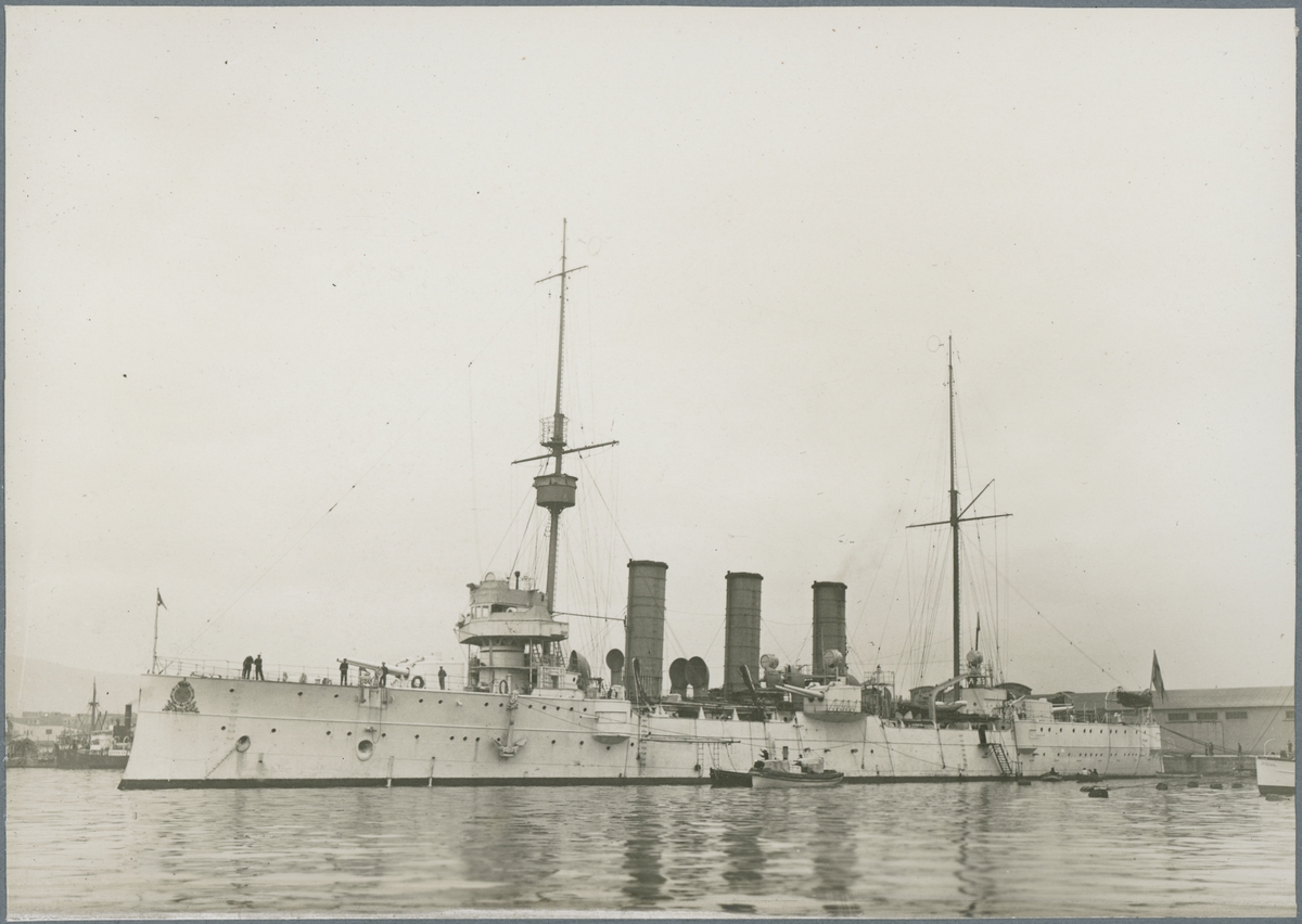 Pansarkryssaren FYLGIA fotograferad i Barcelona, en av de sista anhalterna under långresan 1925-1926, i vilken Gunvald Berger deltog.
