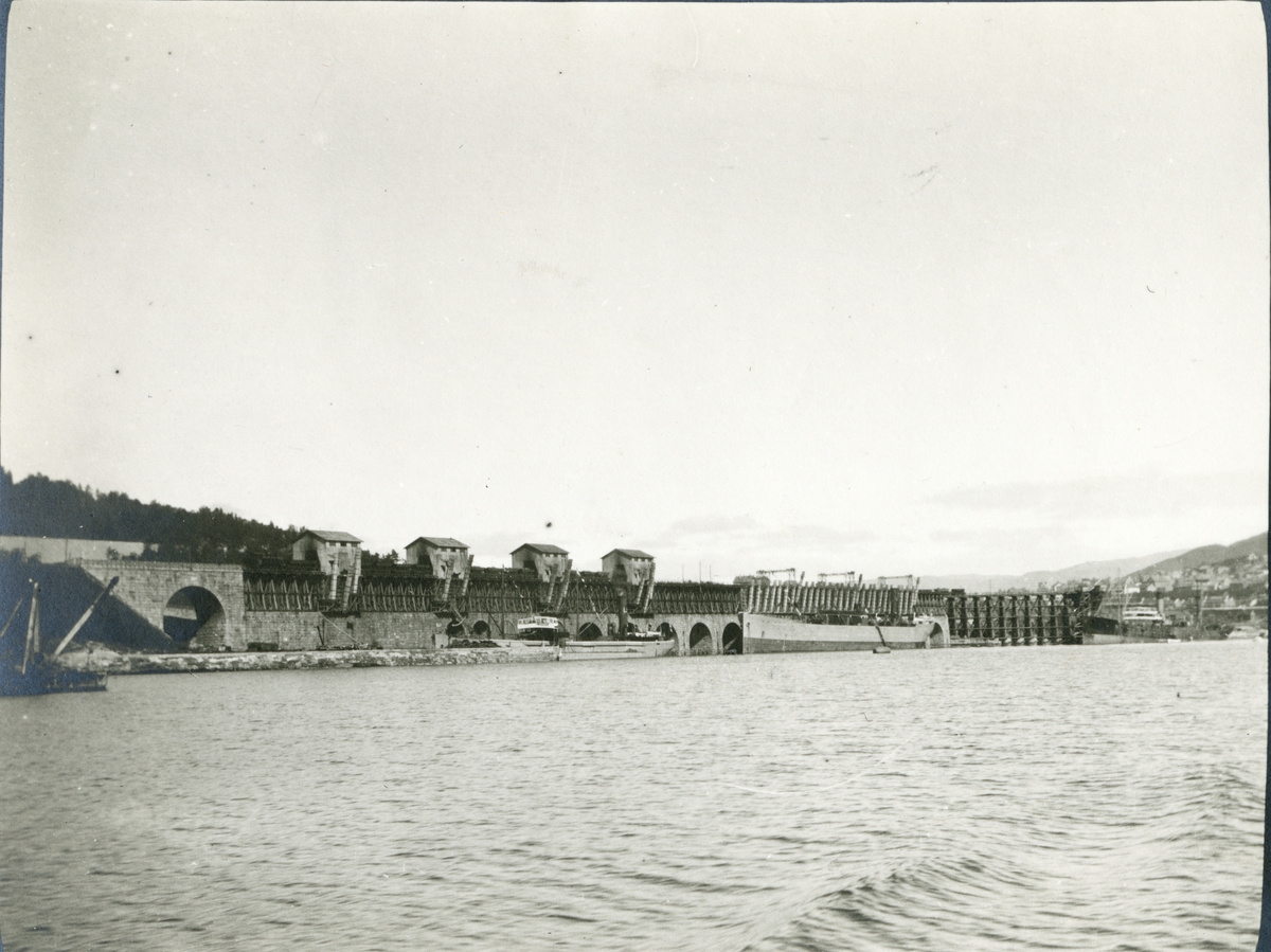 Bildtext: "Narvik: malmkajen med ångf. Wolrath, Tham och Polcirkeln"