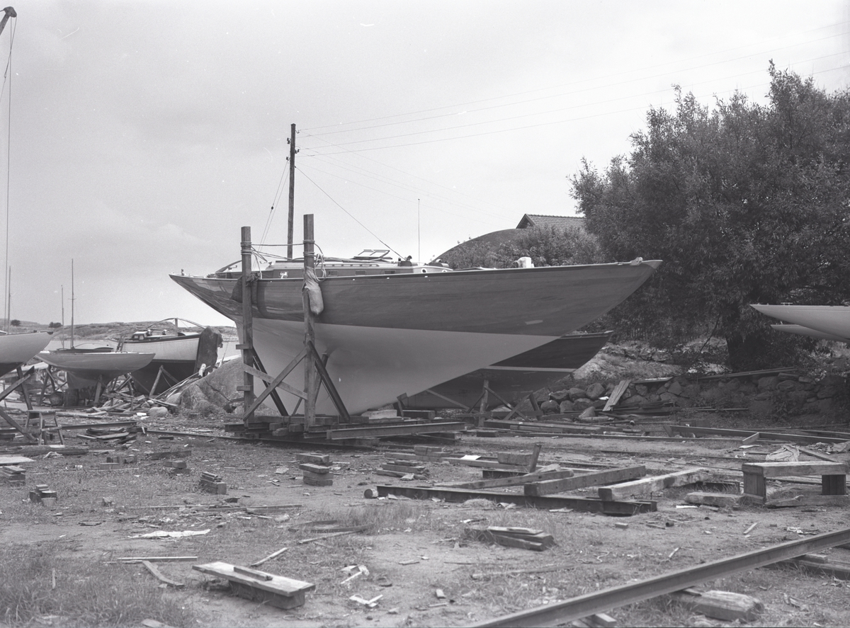 [från fotobeskrivningen:] "Sjösättningen av GULLVEIG II på Arendals båtvarv 1947. GULLVEIG (14,10 x 2,84). 65 kvm GULLVEIG 1947. Eril [sic] Salander foto 12 juni 1947."