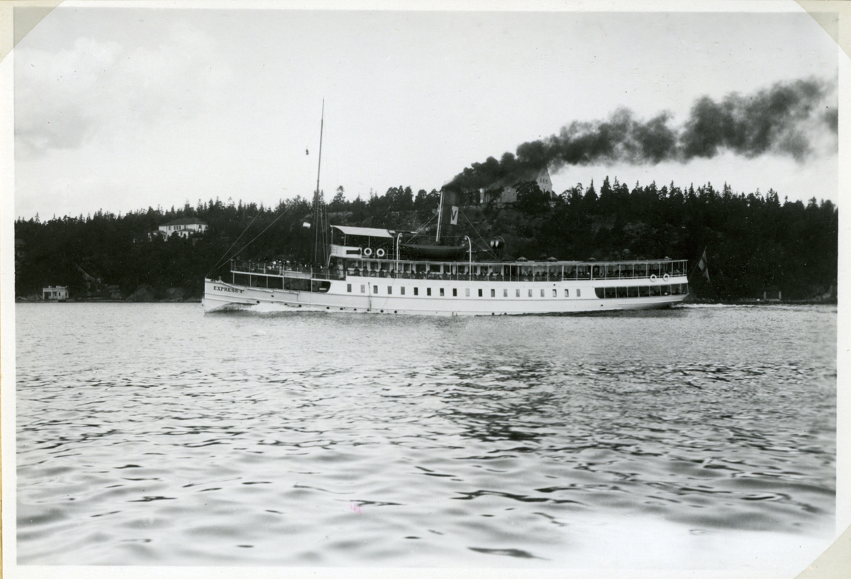 Waxholmsbolagets EXPRESS i Halvkakssundet. I bakgrunden Högberga på Lidingö.