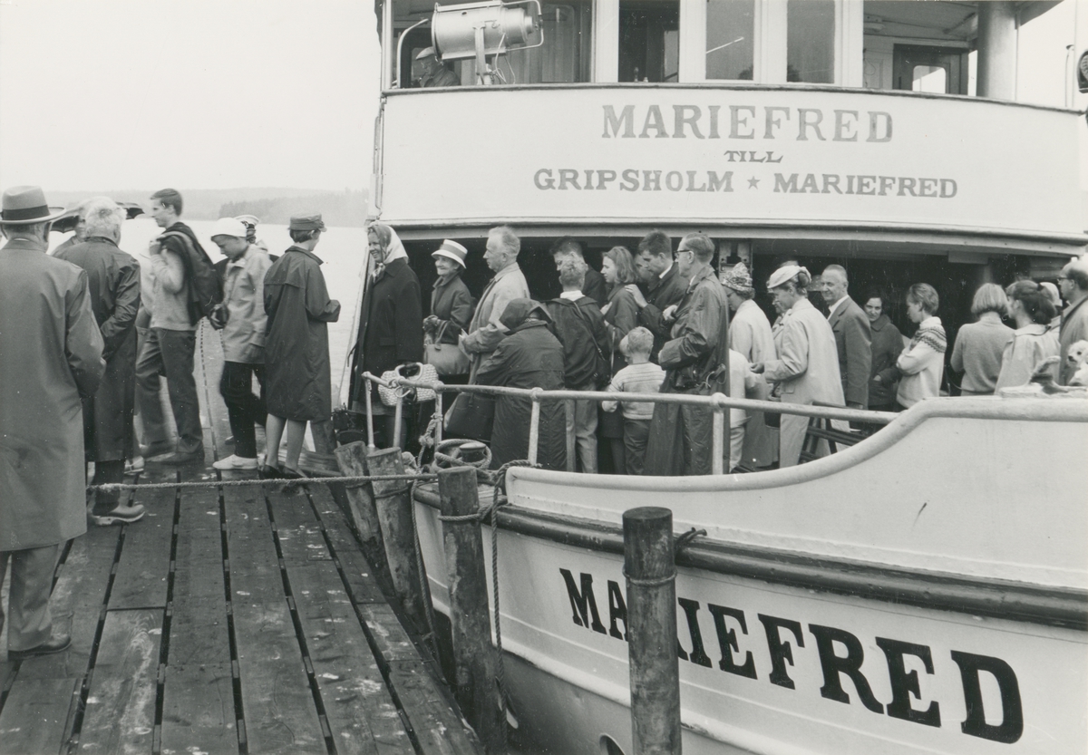 S/S Mariefred vid ångbåtsbryggan i Mariefred. Passagerarna går i land.