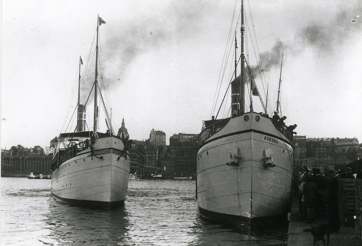 Passagerarångfartygen Torneå av Helsingfors och von Döbeln av Helsingfors liggande vid Skeppsbron, omkr. 1920.