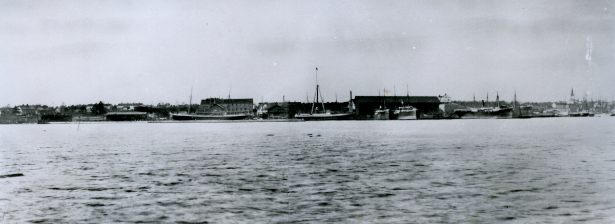 9. Fartyg under reparation vid kajen. Fartyget t.h. ligger under saxkranen.