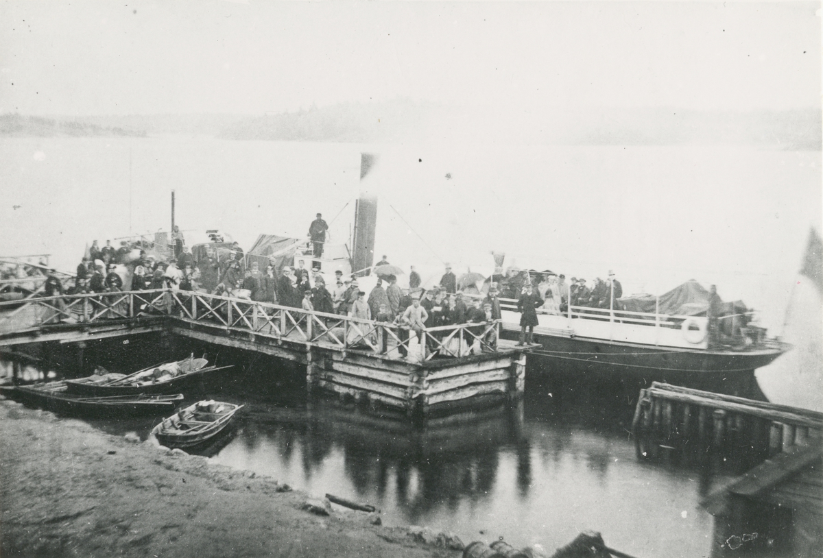 Hjulångfartyget Jakob Bagge vid Dalarö Brygga omkring 1870.