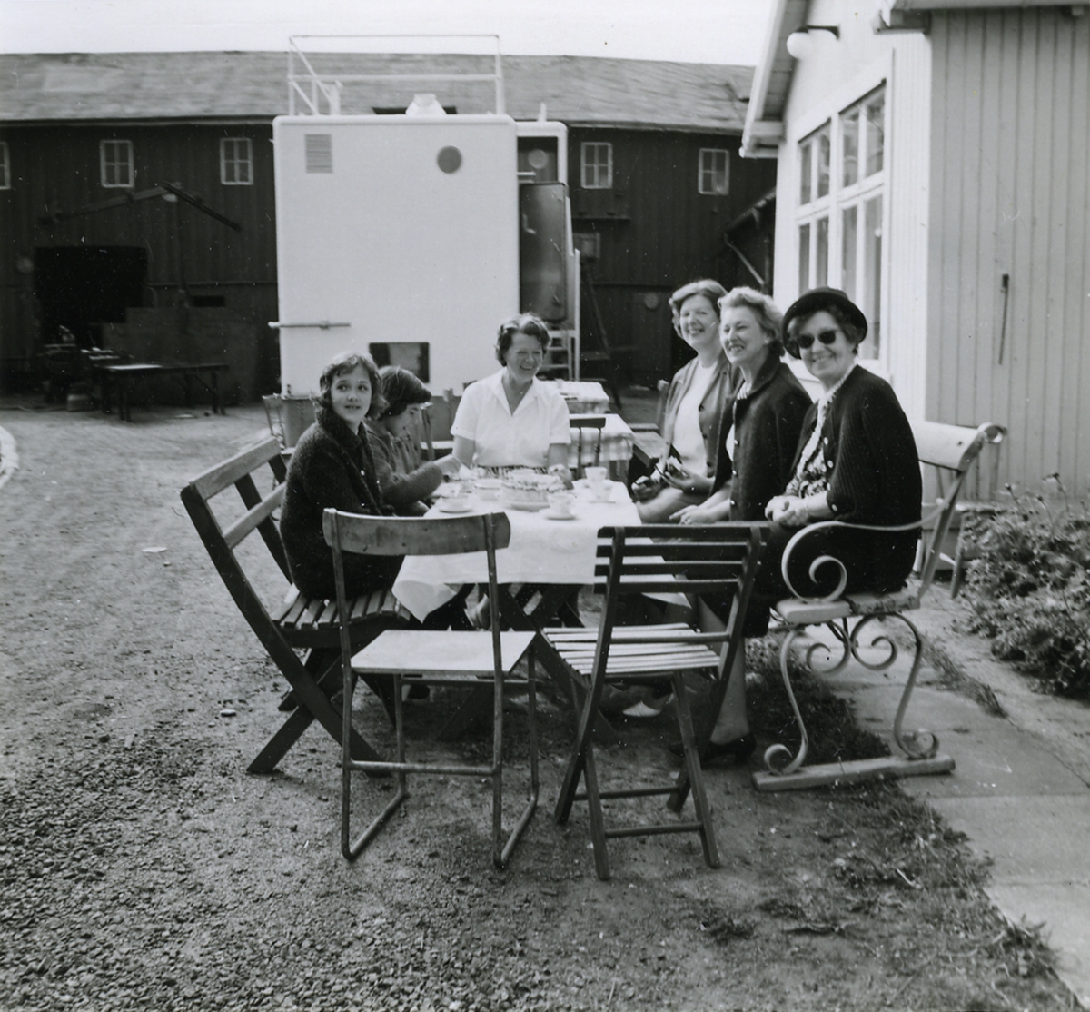 Damernas bord kaffekalaset. 1, 2 och 4 fr.v. är Carl erik Palmgrens, Henrik Gustafssons och Martin Gustafssons fruar.