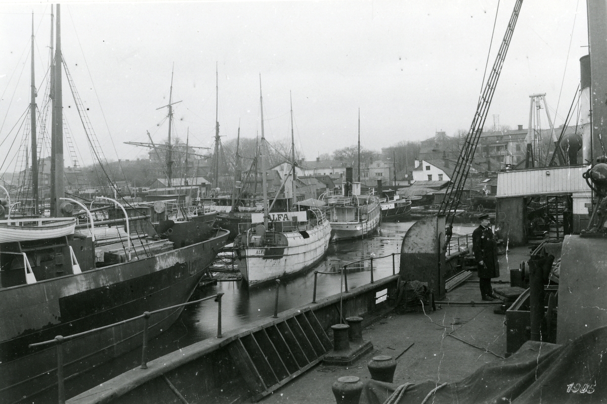 ROSENVIKS VARV och Mek. verkstad år 1905.[Mer troligt att det är 1907 då fartyget låg upplagt vid Rosenviks varv där bilden är tagen]