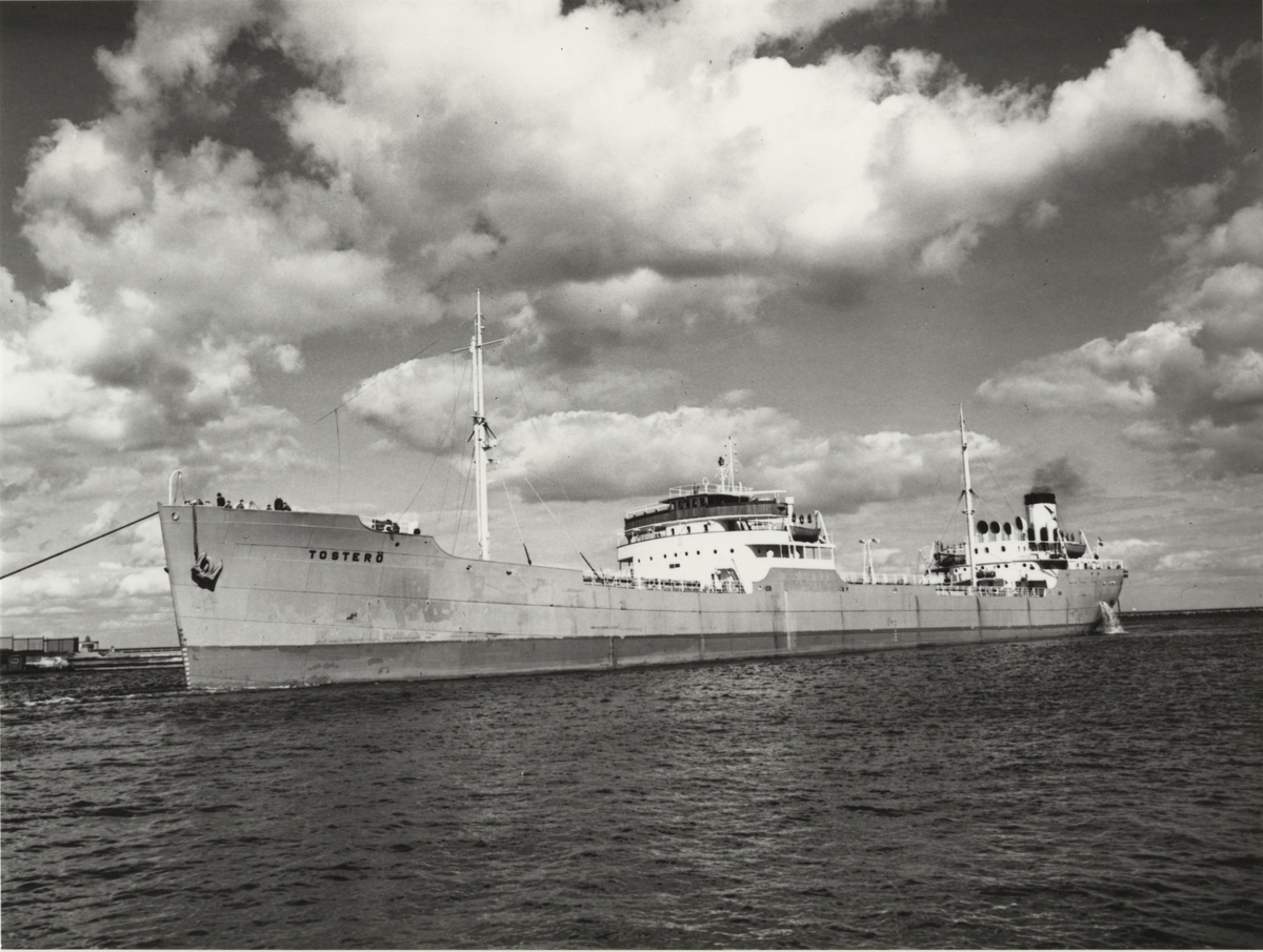 Foto i svartvitt visande tankmotorfartyget "TOSTERÖ" i Köpenhamn någon gång under åren 1957 - 1962.