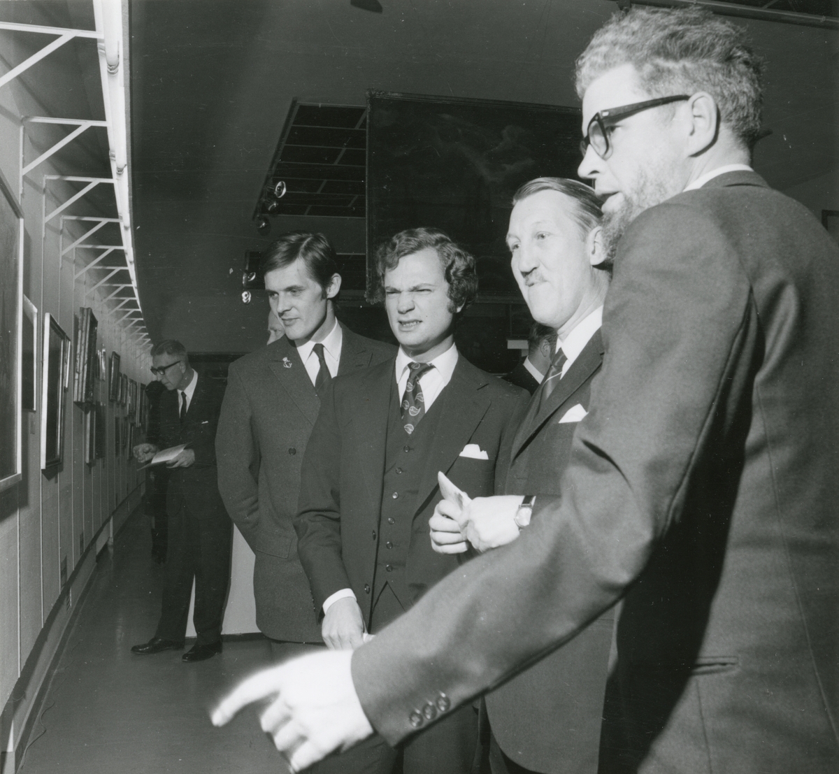 Utställningen "Örlogsmannabilder". Kronprins Carl Gustaf och museidirektör Per Lundström tittar på utställningen tillsammans vid invigningen.