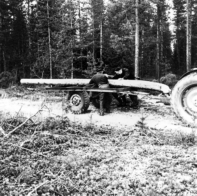 Neg nr 24. Költallen lägges på traktorsläp för hemtransport. Foto 6.10 (1962).