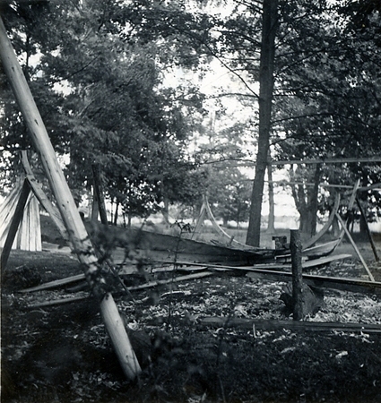Småland, Kalmar län, Tunaläns härad, Misterhults socken, Virbo. Rågöflyktingen Granback bygger en båt.