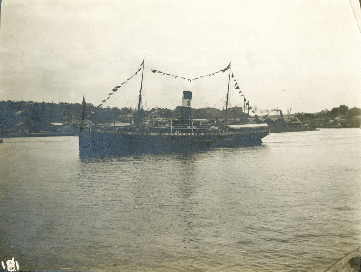 S/S Aeolus påbörjar sin resa från kajen vid norra Blasieholmshamnen till Svalbard.