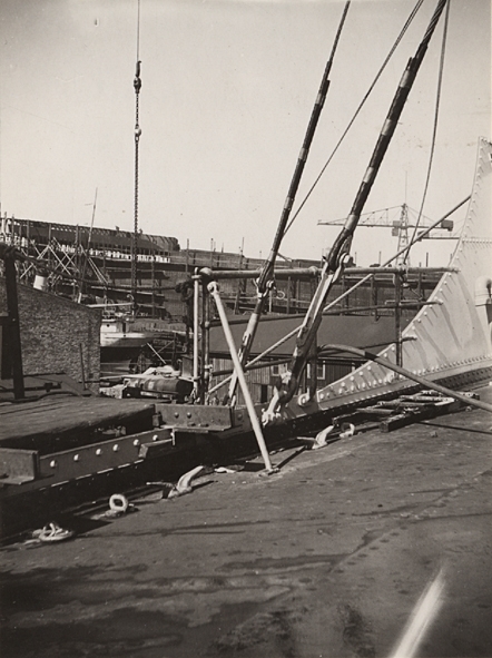 Lastmotorfartyget BRASIL av Stockholm, byggt i Göteborg 1935. Detalj av babords fockrigg.