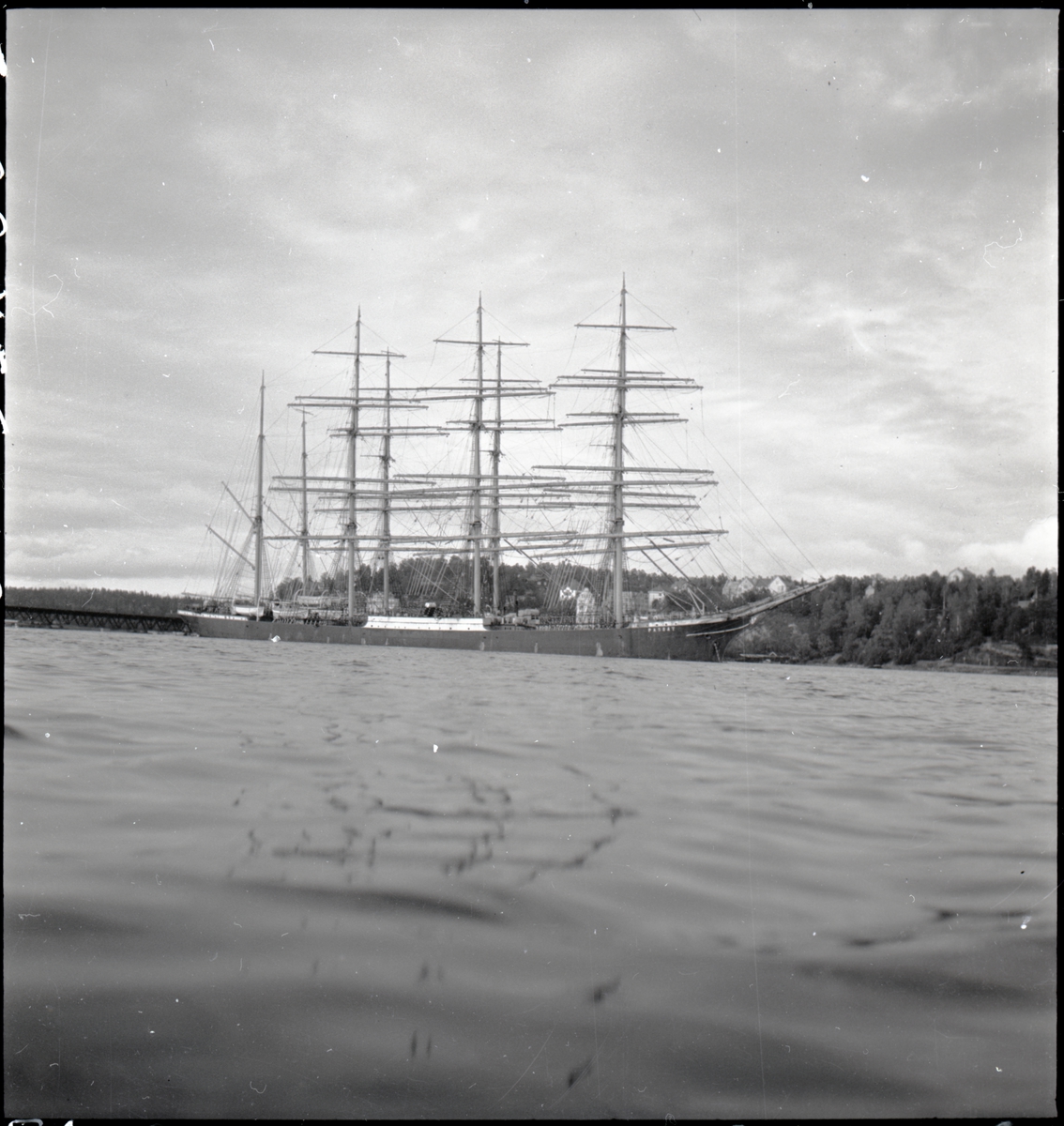 Titel: [från fotobeskrivningen:] "4-mastbarken Passat till ankars på Värtan i augusti 1944. Bogserades från Åland till Stockholm i juli 1944 för att användas som spannmålsmagasin. Bakom Passat ligger 4-mastbarken Viking." [---]