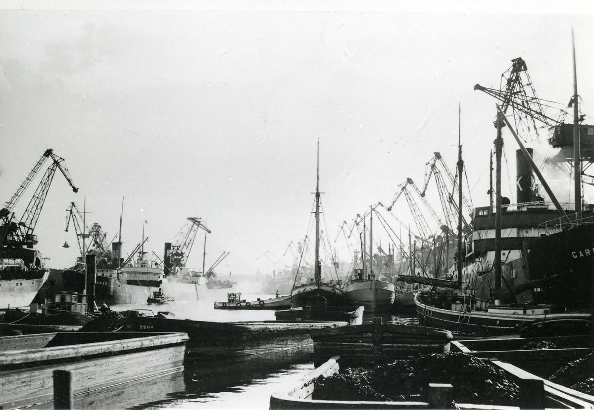 Foto visande Sannegårdshamnen (kolhamn) fullbelagd i Göteborg.