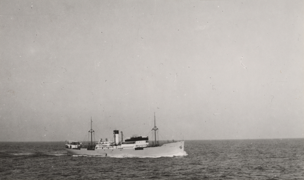 M/S Sicilia for hjemgående med 13 knops fart, tat fra sösterskibet Scania den 19 maj 1935 kl.8.10 Morgen i Spanske sjön omtrent tvers av Cao Finisterre av Georg Gjersöe.