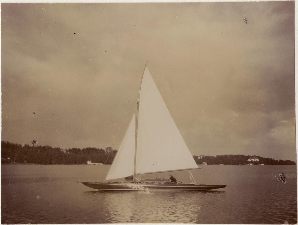 [från fotobeskrivningen:] [---] "'Sonja var en lång, smal båt.'" "Troligen under provturen 1920." "Salanders samling. Jfr. SSHM:s arkiv 5:F II." [---]